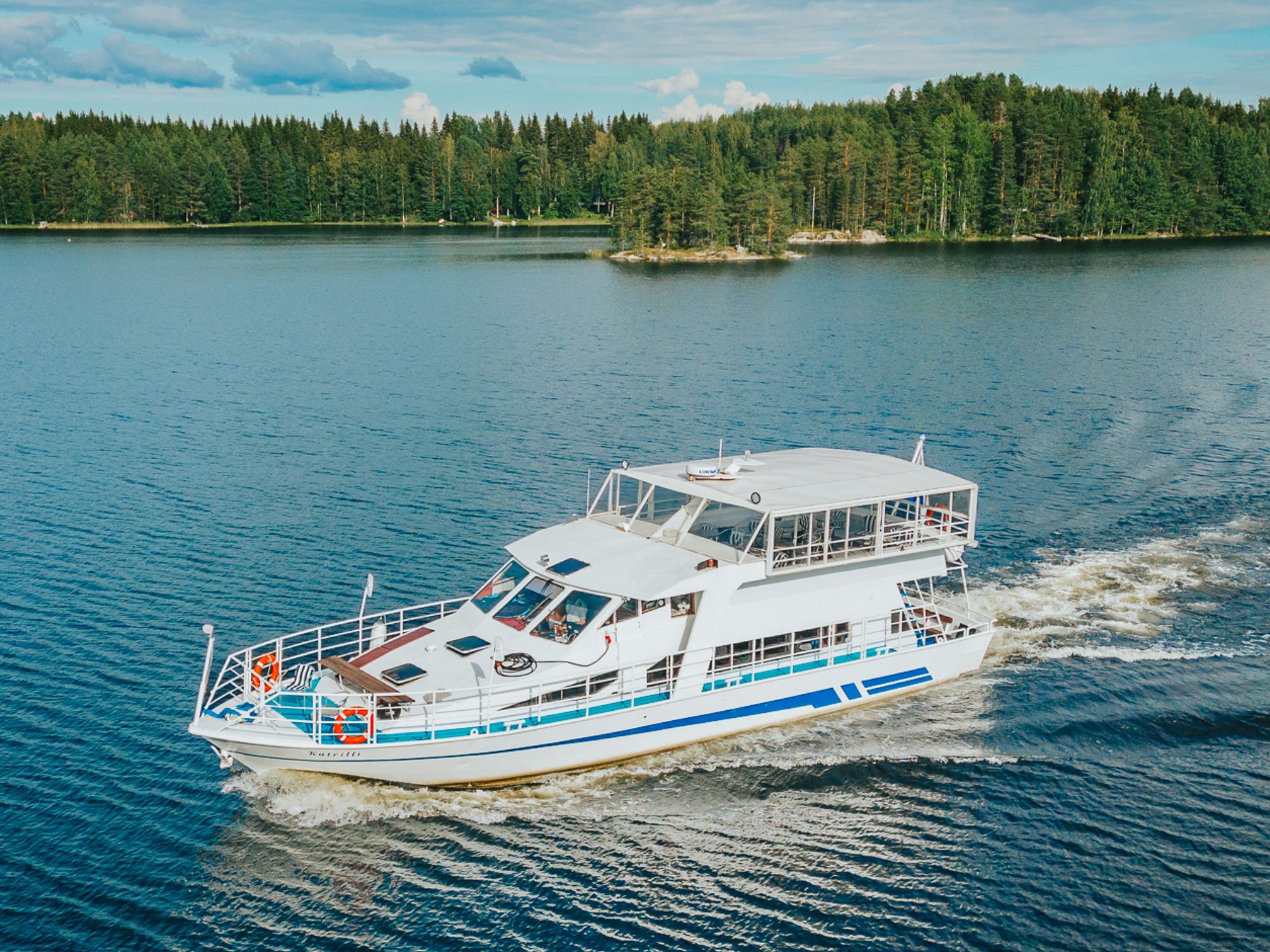 m/s Katrilli is a comfortable and modern cruise vessel for approximately 85 passengers. The ship features indoor and outdoor areas, a licensed café/bar and sound system facilities.